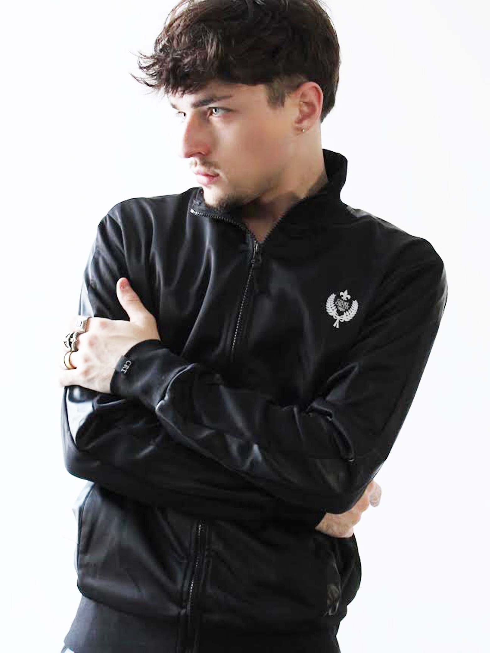 - Petit détail mais précieux: Étiquette tissée Noir « CRT » en argent lurex, sur le bord cote de la manche gauche.